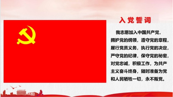 大会最后开展重温入党誓词,全体党员面对党旗进行庄严宣誓。