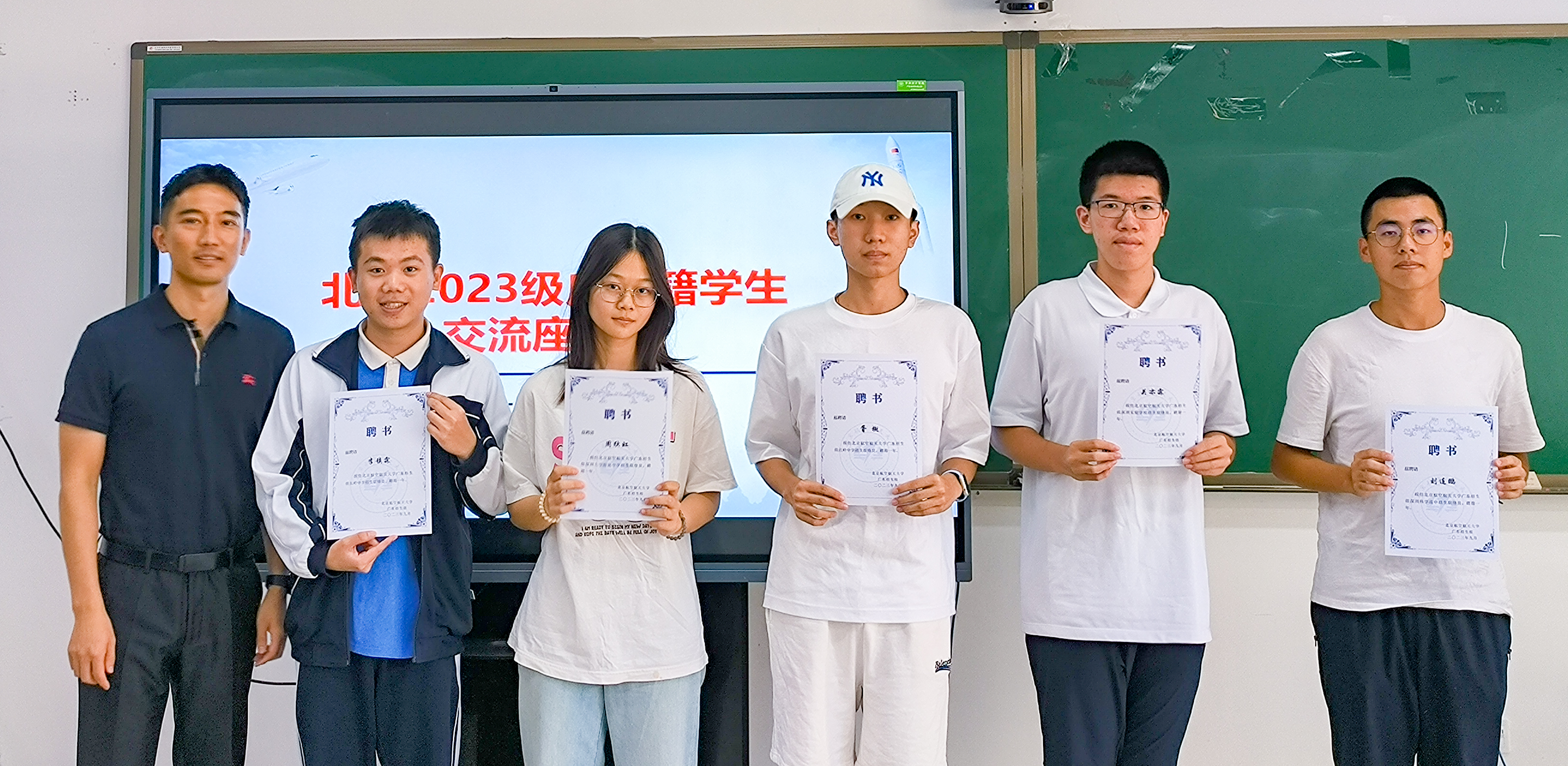 会上,魏茜与孔祥明为报名参加北航广东招生组宣传联络员的44位新生颁发了聘书,动员同学们积极参与到后续的招生工作中,进一步聚拢高中资源、活化朋辈网络,以“学长学姐式”的解答帮助更多优秀的广东学子找准方向、圆梦北航。