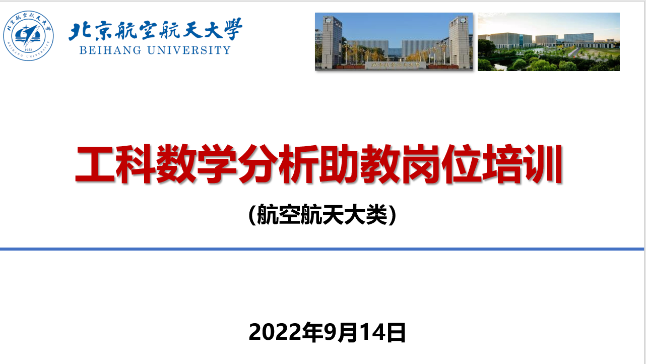 学期伊始,为完善助教工作体系,进一步提高助教工作实效,使其充分发挥“助教、助学、助人、助己”的作用,9月14日晚7时,工科数学分析(航空航天类)课程组开展了首次助教培训与交流大会。围绕如何开展“遴选、培训、考核、表彰、传承”为一体的助教队伍系统性建设,本次培训会议题全方面涵盖了助教的管理与职责、助教的考核与奖惩、助教工作经验的分享与交流等。按照常态化疫情防控要求,此次培训会线上进行。