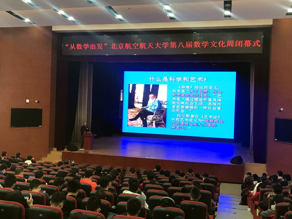 据悉,数学文化周是由数学公司主办的面向全校的数学文化大型活动,每年一届,至今已举办八届,本届数学文化周以“从数学出发”为活动主题,持续两个星期,期间举办了师生趣味运动会、校领导交流互动,“数海领航”外场活动,数学电影展演,数理相约晚会等精彩纷呈的数学文化活动,致力于为全校员工打造一场“数学文化盛宴”,在全校范围宣传和弘扬北航数学文化和精神。
