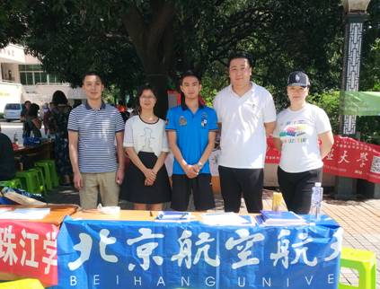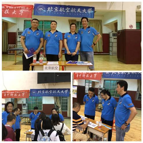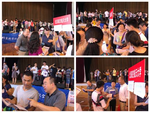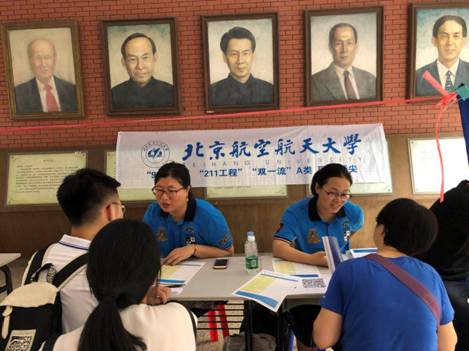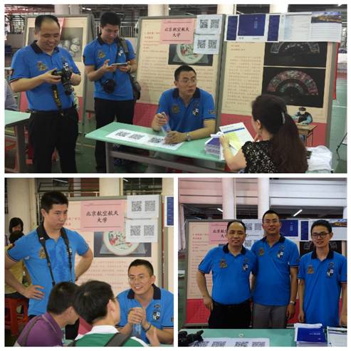 在广州,为期5天的招生宣传工作得到了近30位员工的鼎力帮助。炎热的夏季,广东员工会的员工们不仅专门接送招生老师们去各个招生地点,还积极主动地响应广东招生工作组的号召,不辞辛劳地去到华南理工大学、广州市高招咨询会、广东实验中学、广雅中学等近十处招生宣传点,为今年的考生宣传北航的文化和情怀,现身说法介绍北航目前的发展和就业工作情况,点燃高考生心中的航空航天报国梦想。广东员工会们见证了北航招生会场人气聚集,场面火爆。