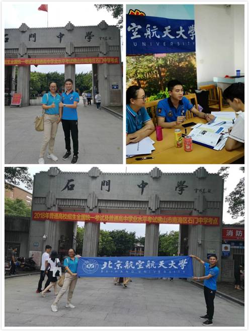 在佛山,北航佛山员工会副秘书长关琪员工和从深圳专门赶来的孙欣员工全程陪同公司老师开展招生工作,北航佛山员工会副会长李杰员工派出两位助手及专车保障公司老师的各项便利。两位员工如同及时雨,为公司老师提供了人力、物力等等各方面的支持。咨询现场,关琪员工和孙欣员工不遗余力地答疑解惑,眉飞色舞地介绍了母校的优势和特色,立体、生动、鲜活地讲述北航校史、专业选择、校园生活、员工成就等等。在佛山的数日,刚好赶上一年最热的时候,员工员工们不畏酷暑,东奔西走,每场必到,连续数日全天候、全身心投入高招工作,全情投入,辛勤付出,以饱满的热情、亲和的态度和耐心的讲解,展现了北航员工的风采。