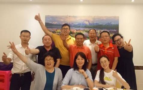 | 招生老师—郭炳晖老师(左一)、丁丁老师(左二);员工—姜波(右一)、梁建军(右二)、马永红(右三)、赵建峰(右四) |