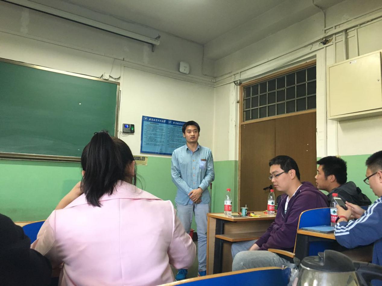首先,大家来到国际交叉科学研究院,参观了李阳老师的交叉实验室。在该实验室进行科研学习的2012级华班崔魏刚学长向我们介绍了他的日常学习和工作,让我们近距离了解到如何将数学知识运用在科研中。随后李阳老师十分热情地为大家介绍该实验室研究的方向,包括脑信号处理、复杂脑网络建模及脑诊断等世界前沿主题。比如李阳老师具体介绍了他的一个医工结合项目,运用机器学习测试癫痫患者脑电波,从而寻找癫痫的病变区域。李老师非常欢迎大家来他的实验室学习,同时他也鼓励大家在本科期间要积极参与科研活动,诸如冯如杯之类的竞赛等,做到用中学,学中用。