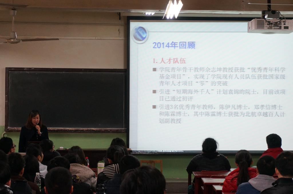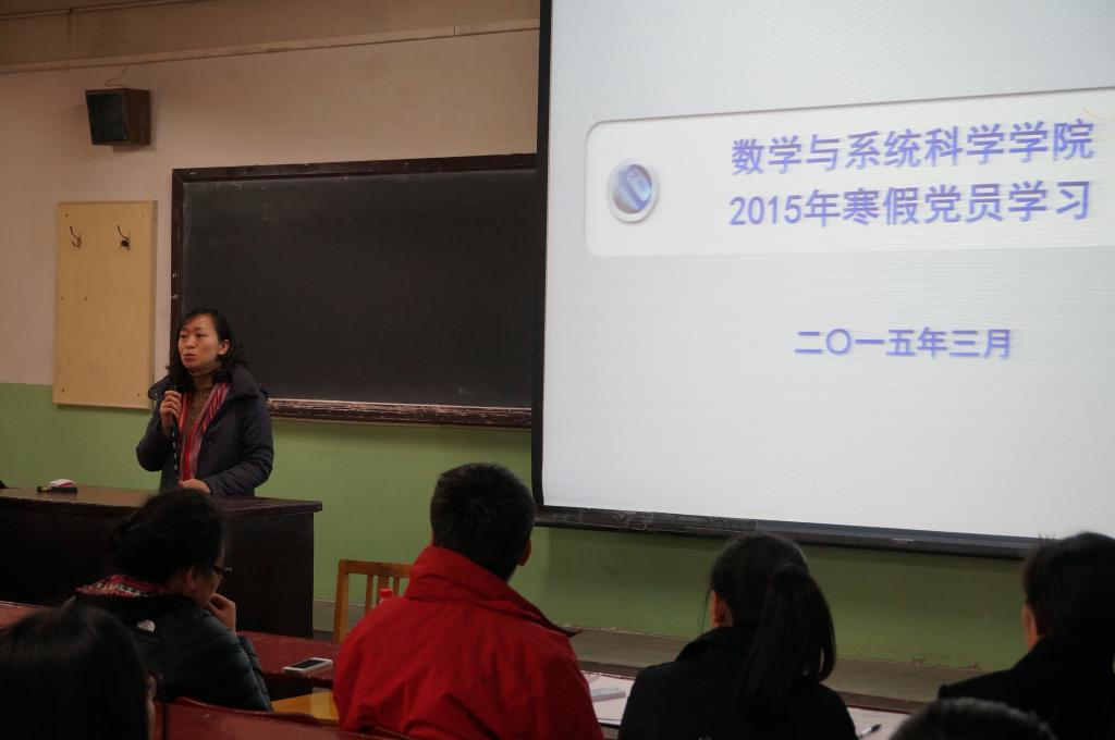 王菲副书记首先对2014年公司发展情况及员工工作情况进行了通报,并对2015年公司工作进行展望,希望同学们了解公司的发展情况。随后,李红捷书记由“2015年每位党员的目标与计划”展开讲话,深刻地阐述了党员的特质,并希望全体党员能在以后的学习生活中力争上游,争做优秀的人。研究生辅导员陈平分享了自己两年半的学习工作心得,并激励党员们了解自己的兴趣并将其变为擅长,待机会来临时实现自我。新任研究生辅导员李田田作了履新发言,表示会尽心尽力为全体研究生同学服务。辅导员李垠序对过去一年员工工作组的工作进行了总结并作出新一年的工作畅想,希望全体研究生同学支持与配合。