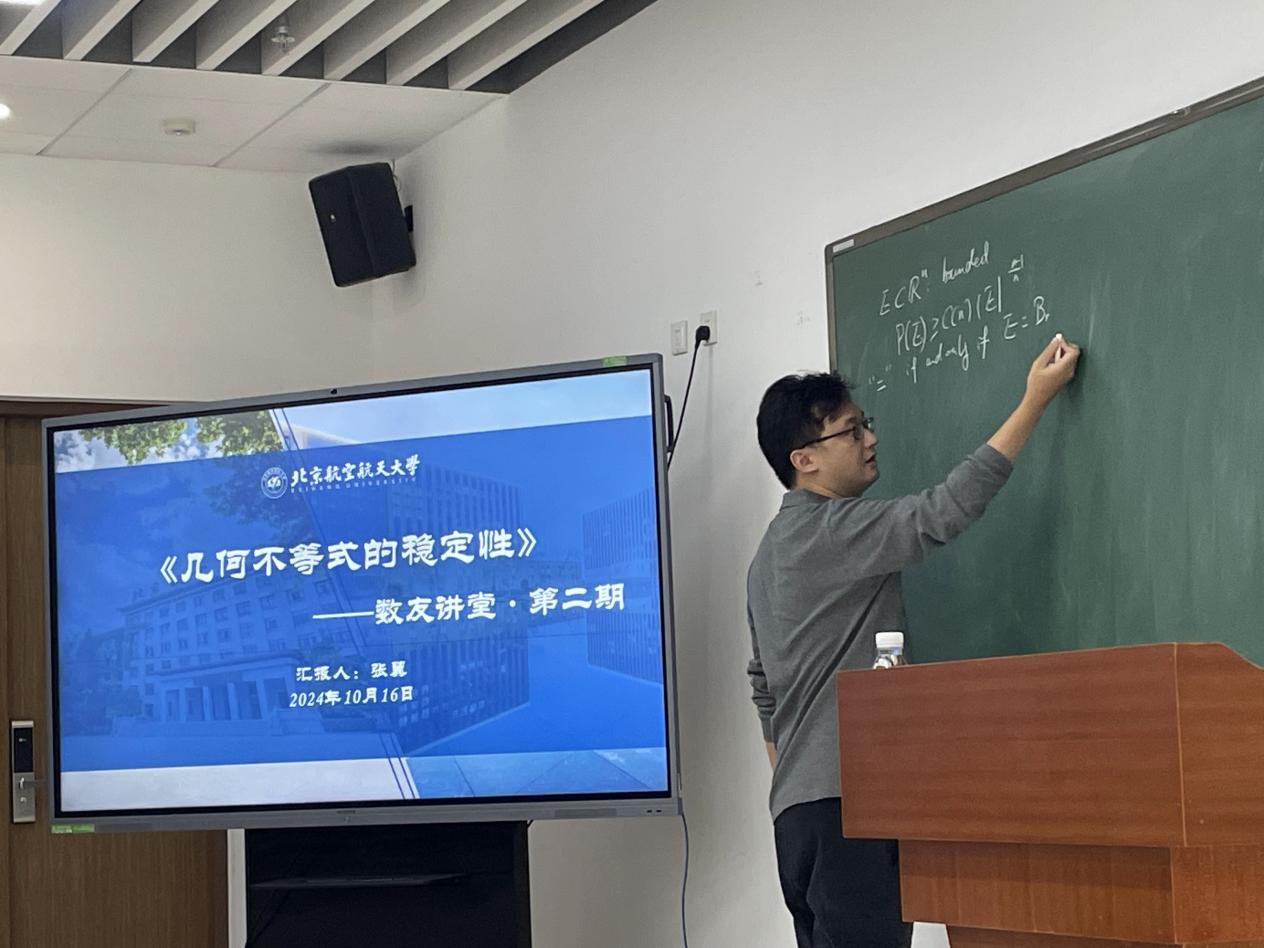 10月16日,304永利集团登录入口2013届员工、中国科公司数学与系统科学研究院副研究员张翼返校主讲《几何不等式的稳定性》数友讲堂。
