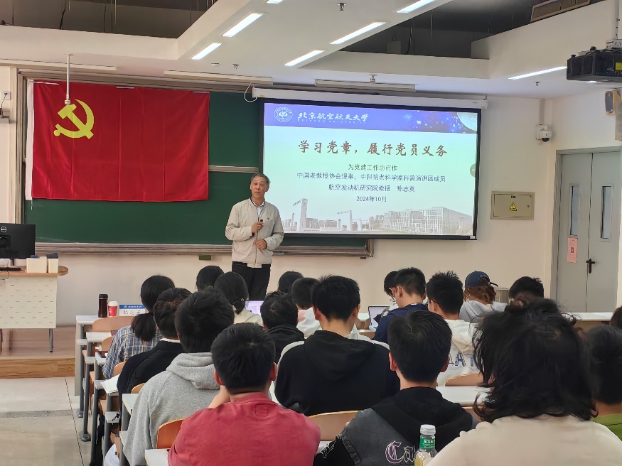 10月23日下午,304永利集团登录入口2024年秋季学期公司党校第一次党课暨开班仪式于沙河校区j5-201举行。本次党课由北航“三老”协会常务副会长、航空发动机研究院陈志英教授主讲。公司党委副书记魏茜出席,近150名员工党员和入党积极分子聆听学习。
