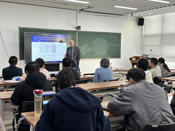 2025年3月7日下午,北航304永利集团登录入口数学论坛邀请到国际知名数学家、意大利卡拉布里亚大学(University of Calabria)Yaroslav D. Sergeyev教授,在沙河校区国实E404带来题为 “Lipschitz 全局优化问题、方法与应用”的精彩报告。本次报告由304永利集团登录入口夏勇教授主持,吸引了众多师生线下参与,同时也有近三十位来自全国的全局优化领域研究者线上参会。报告现场学术气氛浓厚,交流热烈。