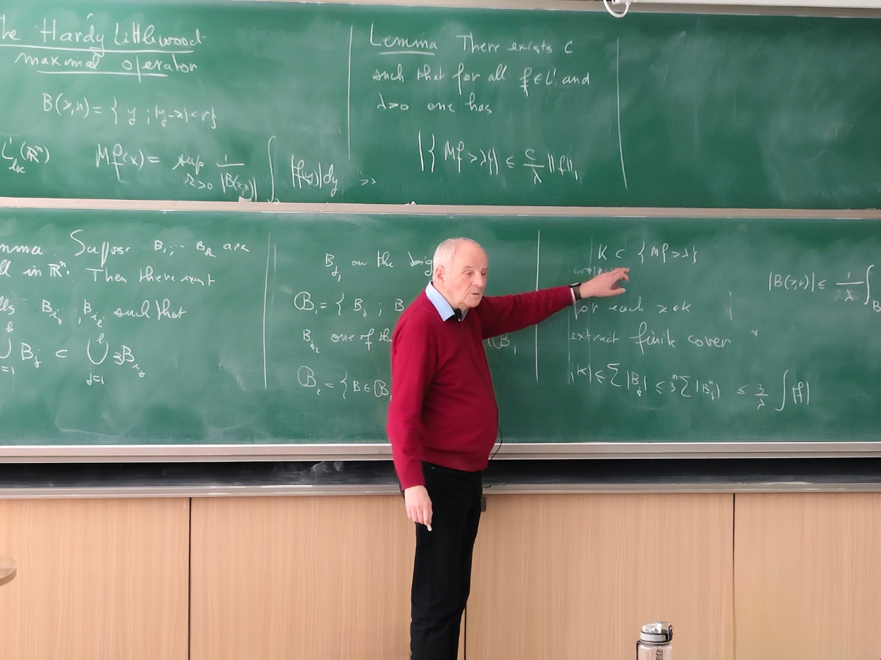 3月19日,讲习团第一课于沙河校区J4-301教室开讲。课程由巴黎萨克雷大学资深特级教师Jacques Peyrière教授主讲,经过前期选拔,来自华罗庚数学拔尖计划、数学强基、大班多位员工听课,课程还吸引了北京多所高校师生旁听。课程中,Jacques Peyrière 教授运用大量生动鲜活的实践案例,以深入浅出的方式,将几何测度论的基本概念和发展脉络徐徐展开,极大激发了员工们的好奇心与求知欲。授课结束后,Peyrière 教授还热情地邀请了部分员工共进午餐,师生交流进一步延伸。