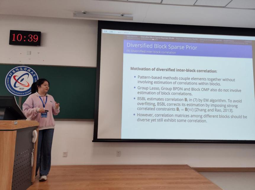 2022级博士研究生张岩昊在导师夏勇教授的指导下与博士生朱之翰合作研究了簇稀疏贝叶斯学习。对预设块信息敏感是块稀疏学习领域长期存在的问题。报告中提出了一种自适应块估计的簇稀疏先验。基于此设计的簇稀疏贝叶斯学习方法有效解决了块稀疏学习领域中长期以来对预设块信息敏感的难题;针对过拟合与欠拟合的传统难题。通过创造性地引入“隐约束”框架,为这一传统难题提供新的解决思路。同时,建立了模型的最优性理论,在多模态测试中相较于现有方法提升近一个数量级。报告内容已发表在人工智能与机器学习国际顶级会议The Thirty-eighth Annual Conference on Neural Information Processing Systems (NeurIPS 2024)上。